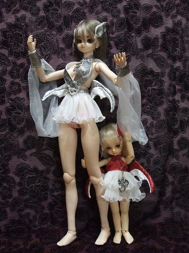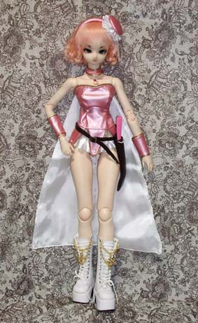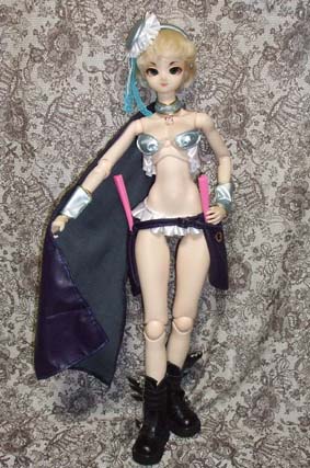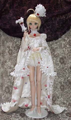 あ、手に持っている鎌は、展示用に100円ショップで購入したものなんですが、このドレスセットを購入てくださった方におまけで付けます。でも張りぼてなので、もっと格好いい武器とかを他のディーラーさんとかで購入してあげた方がいいかも。(笑)軽くて持たせやすいのは良いんですけどねぇ。