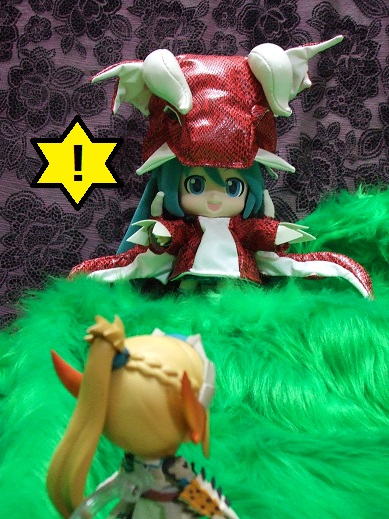 はちクエのメインビジュアル…な画像です。なんだこの緑の、という方は「海賊の仕立て屋」サイトにGO!(笑)…いや、実は展示用に作成しました、騎乗用のドラゴンです。幼SDにぴったりサイズで、販売用はありません。デザイン時に「作れたらいいなーでも時間が足りないかもー」と漠然と思っていたんですが、鎧一式を作成中に、なんていうか…「うおおおっ!私は鍛冶屋から召喚士にジョブチェンジする!」とかわけわからんテンションが上がりまして(笑)、一気に縫い上げてしまいました。首が回せたり、翼を広げたり、首輪や手綱や蔵を装着したりなど、こだわりいっぱいに作ってます。ドルショで展示しますので、良かったら彼にも会いに来てやってくださいませv