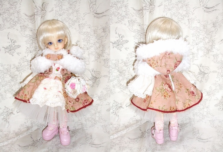 ちなみにサイズはオビツ40 S胸で作成しましたが、ドレスは胸の上でゴムで止まっている作りなので、Vmf50でも着用可能かも。気になる方は、ドルショ当日、ブースにいる者にお声かけして下さい。お試しいただくことが可能ですv
