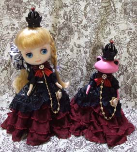 お次は、↑で紹介しましたワンダやミディブライス対応サイズの夜会ドレスの、紅バージョンです。こちらはハートをイメージしておりまして、鎖が可愛いハート型になっておりますvシックな紫バージョンと、華やかな紅バージョン、お好みの方をどうぞvあ、ちなみにこちらも王冠はセット内容には含まれませんのでご注意下さい。