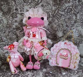 おでこちゃんとニッキのニッキ用に、マダムな海賊風ドレスセットです。手に持っているドクロのハンドバックは、もちろん開閉可能で、中に物を入れられますvこのドレスセットは、以前ドーリィドーリィのイベント記事でも紹介されたことがありました。少しオトナっぽいニッキに変身ですv