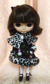 星をちりばめた夜の柄のワンピースに、ふわふわのファーのケープや